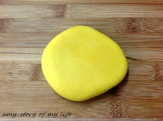 ambil satu bahagian doh.. leperkan.. dan letak sedikit pewarna makanan di atasnya..